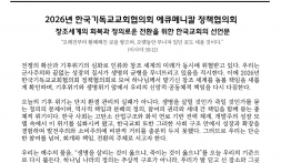 - 전쟁중단 촉구! <매일 평화기도> 한국기독교교회협의회(NCCK, 총무 박승렬) 국제협력선교위원회(위원장 조경진 사제)와 화해와통일위원회(위원장 김현호 사제)는 최근 중동 지역에서 격화되고 있는 군사적 긴장과 충돌, 특히 미국과 이스라엘의 이란 침공으로 촉발된 전쟁 상황에 깊은 우려를 표하며