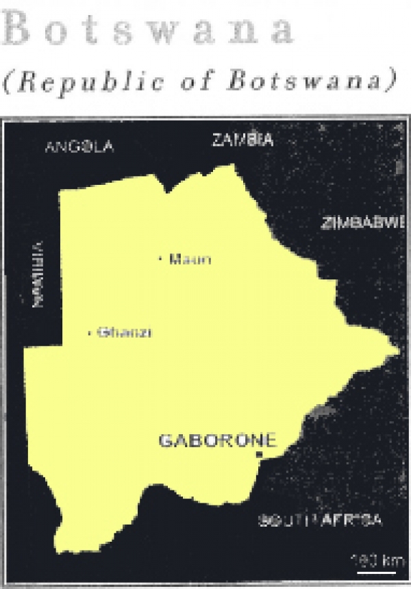 아프리카 중남부에 위치한 내륙국으로 프랑스보다 조금 큰 영토를 가지고 있다. 주변에 나미비아, 잠비아, 짐바브웨, 남아프리카 공화국이 둘러싸고 있다. 국토의 대부분이 칼라하리(Kalahari) 사막에 포함되어 있으며, 서쪽 국경까지는 모래로 이루어진 고원지대이다. 오카방고(Okavango) 강은 이 나라를 관통하는 큰 물줄기로 북서쪽 국경에 있는 늪지대로 이어진다. 보츠와나 공화국의 원주민인 부쉬(Bush)족은 북쪽에서 이주해온 것으로 보인다. 부쉬족을 이어 호텐토츠(Hottentots)족이 찾아왔고, 그 다음으로 반투어를 말하는 부족들이 들어왔다. 이들은 서로 생산물을 교환하며 평화롭게 공존했다. “보츠와나”라는 이름은 보다 루에 이 지역에 찾아온 츠와나(Tswana) 부족의 이름에서 왔는데, 이들은 15세기 초에 남아프리카에서 올라왔다.