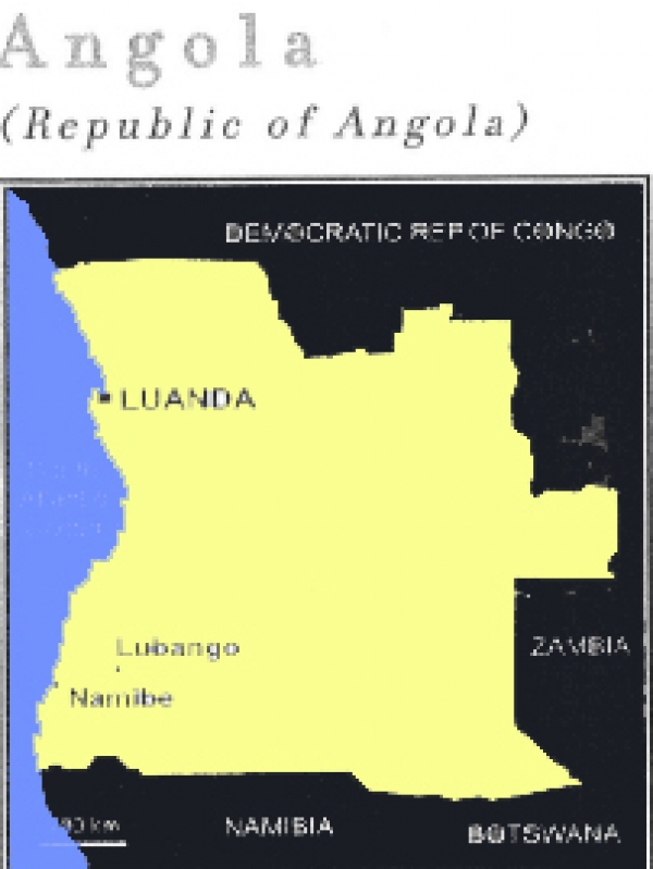 앙골라는 남아프리카의 서쪽 해안에 위치하고 있으며, 북쪽으로 콩고 공화국, 동쪽으로 잠비아, 남쪽으로 나미비아와 접하고 있다. 대서양 해안 북쪽에 위치한 카빈다(Cabinda) 주는 콩고공화국에 둘러싸여 있는 앙골라의 영토이다. 앙골라는 많은 부족들이 함께 살아가고 있는 나라이다.