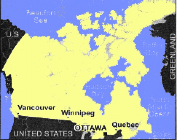 광활한 영토와 풍부한 천연자원을 가진 캐나다는 러시아 다음으로 세계에서 가장 넓은 국토를 가지고 있다. 세 대양(북쪽으로 북극해, 서쪽으로 태평양, 동쪽으로 대서양)과 접하고 있으며, 북아메리카 대륙에서 미국과 유일하게 국경을 접하고 있다. 캐나다 영토 대부분이 혹독하게 차가운 북극권의 기후대에 들어가기 때문에 이 지역에 사는 주민들은 대단히 적다.