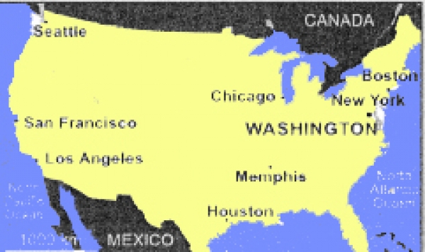미국은 북쪽으로 캐나다, 동쪽으로 대서양, 남쪽으로 멕시코, 서쪽으로 태평양에 접하고 있다. 미국의 오십 개 주 가운데 가장 큰 알래스카는 아메리카 대륙의 서북쪽 끝에 자리하고 있으며 캐나다와 접하고 있다. 하와이 주는 태평양에 있는 여러 개의 섬들로 이루어져 있으며, 그밖에 태평양과 카리브 해에 자치권을 가진 여러 섬들이 있다.
