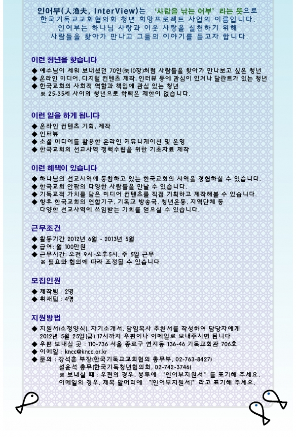 한국교회 청년 희망프로젝트 『인어부(人漁夫)』모집 공고