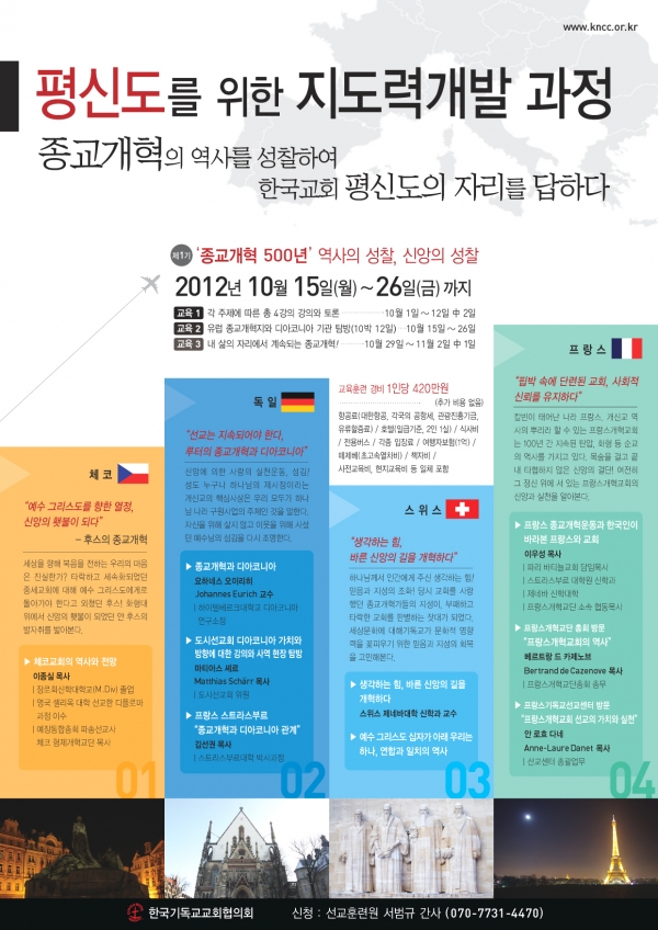 그 첫 발자취로로 16세기 종교개혁의 현장에서 얀 후스, 루터, 츠빙글리, 마틴 부처, 칼빈 등의 발자취를 밟으며 이들의 개혁정신과 실천을 직접 체감하는 제1기 에큐메니칼 평신도 해외훈련을 준비했습니다.