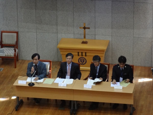 한국기독교교회협의회 선교훈련원은 지난 8일, 연세대와 망원한강공원에서 <제4회 에큐메니칼 신대원연합 학술제와 체육대회>를 열었다. 에큐메니칼 신대원연합 학술제와 체육대회는 다양한 교단의 신학생들이 매년 가을 서로의 신학을 이해하고 신학적 소양을 고양하며, 운동을 통해 서로 교제하는 에큐메니칼 신학생 잔치로, 지난 3년 동안 "사회적 성화"를 주제로, "칼빈의 사회적 성화"(2009, 장신대), "웨슬리의 사회적 성화"(2010, 감신대), "사회적 영성과 민중신학"(2011, 한신대) 등을 진행했으며, 올해로 4회째를 맞고 있다. "신학과 미학"을 주제로 한 이번 학술제에는 장신대와 감신대, 한신대, 성공회대, 구세군사관학교, 연세대 연신원 등 총 6개 신학대학원에서 학생 200여명이 참석했다. ![]() ▲ 학술제 주제발표, 왼쪽부터 강성영 신대원장(한신대), 심광섭 교수(감신대), 이정구 총장(성공회대), 최철호(구세군사관학교) 감신대 심광섭 교수(예술신학)는 "놀이에 대한 신학적 미학"을 주제로 한 발표에서, "세상은 교회를 불신하고 교회는 점점 세상의 상품화된 놀이들로 넘쳐나고 있다"며 "신학이 세상과 교회에 영향을 끼치지 못하고 허덕이는 이 때 '놀이의 신학'이 활기 넘치는 새로운 신학적 담론의 방식이 되길 기대한다"고 말했다. 연세대 손호현 교수(문화신학)도 발표에서 '흥'의 본질은 물상화, 고착화될 수 없는 관계성의 춤추기에 있다며, 기독교 공동체가 신학의 흥겨움을 회복하고, 마치 춤이 물리적인 중력의 힘에 저항하며 상승의 몸짓을 하듯, 흥의 신학도 정신의 무거움에 저항하여 창조적인 놀이를 춤추어야 한다고 강조했다. 이날 논찬에는 성공회대 이정구 총장과 서울신대 황덕형 교수가 참여했으며, 학생 논찬자로는 구세군사관학교 최철호 학생과 한신대 김영수 학생이 함께 했다. 오후에는 망원한강공원에 모여 각종 구기종목으로 체육대회를 진행했으며, 작년에 장신대가 우승을 차지한데 이어 올해는 감신대가 종합 우승을 차지했다. 선교훈련원과 함께 행사를 진행한 연세대 연합신학대학원 문수경 회장은 "에큐메니칼 신학생들이 공동 기획단을 꾸려 함께 준비한 행사여서 더욱 뜻 깊었다"며 "한국교회의 건강한 미래 리더십으로 자리매김하기를 바란다"고 말했다. ![]() ▲ 성공회대학교 학생들의 전례음악 시연 모습 ![]() ▲ 한신대학교 학생들의 풍물패 공연 모습 한편, 내년 제5회 에큐메니칼 학술제와 체육대회는 구세군사관학교에서 개최할 예정이다. 자료집 다운로드 ▶ 제4회 에큐메니칼 신대원연합 학술제와 체육대회 자료집 |