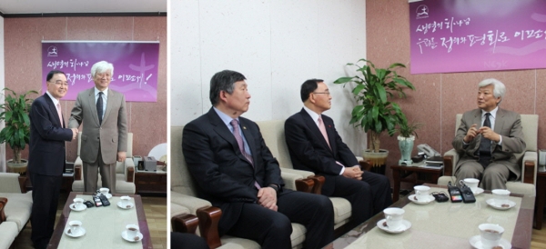 지난 3월 8일 금요일 정홍원 신임 국무총리가 교회협을 예방하여 교회협 김영주 총무와 면담하였습니다. 이 자리에서 김영주 총무는 오는 10월 개막하는 세계교회협의회 (WCC) 제10차 부산 총회의 성공적인 개최를 위해 새정부가 적극 협력해 줄 것을 당부하였습니다. 정총리도 WCC 제10차 총회 준비에 대해 질문하는 등 관심을 나타내었으며, “WCC 총회가 성공적으로 치러질 수 있도록 돕겠다”고 밝혔습니다. 정총리는 “사회 통합에 관심을 갖고 정책을 펴나가겠다”고 말하며, 교회협을 비롯한 기독교계의 성원과 기도를 요청하였습니다. 이에 김영주 총무는 “사회 통합을 위해서는 정부가 먼저 귀를 열고, 일방적 정책 추진이 아닌 소통을 통한 쌍방적 정책 수립과 추진이 필요하다”고 강조하며, “사회 통합을 위해서라면 교회협도 적극 협력하겠다”고 응답하였습니다. ![]() <정홍원 총리, 교회협 방문> C채널 뉴스 보도 보기
