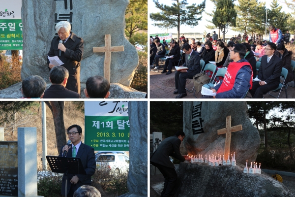 ![]() 제1회 탈핵주일 연합예배가 “탈핵으로 생명과 평화를”이란 주제로 2013년 3월 10일(주일) 오후 5시 강원도 삼척에 소재한 829기념공원 원전백지화기념비 앞에서 드려졌습니다. 이번 예배는 한국기독교교회협의회 생명․윤리위원회와 강원NCC가 주최하고, ‘핵없는 세상을 위한 한국그리스도인 연대’와 ‘핵없는 세상을 위한 동해시 기독교연대’가 주관하여 진행되었으며, 약 100여명이 참석하였습니다.