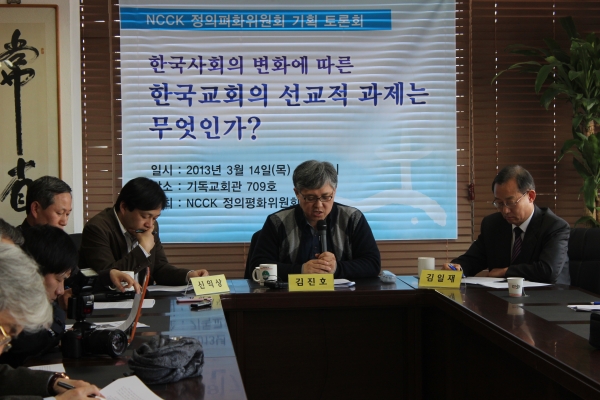 발제를 맡은 김진호 목사는 한국사회 변화에 따른 한국교회의 선교적 과제를 “교회 신앙의 구석구석까지 침투해 있는 성장 지상주의적 신앙을 청산하고, 작은 교회가 경제민주화 복지 동맹의 일원으로서 자기 교회의 프로그램을 이야기하고 지지받을 수 있는 발언의 장을 만들어야 한다”고 강조하였습니다. 김 목사는 그야말로 미친 성장주의에 빠진 오늘날 한국교회를 질타하며, 시대가 요구하는 경제민주화와 복지를 위해 대형교회가 아닌 작은교회가 롤모델이 될 수 있다는 의견을 내놓았습니다.