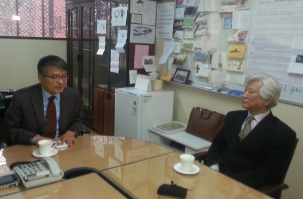 ▲교회협 김영주 총무와 기장 배태진 총무는 WCC 한국준비위원회 논란에 공동대응키로 하는 한편 연세대 문제와 관련 "사활을 걸고 되찾겠다"고 밝혔다.