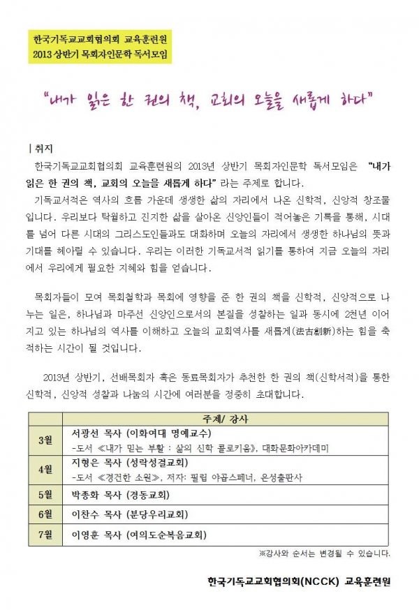 [공지] 교육훈련원 목회자 인문학 독서모임