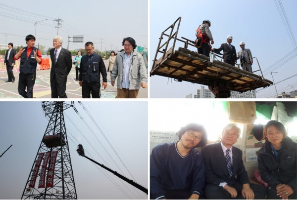a transmission tower in a strike action for over 160 days outside the Ssangyong plant in