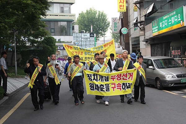 참가자들은 “정치개입 부정선거 원세훈을 구속하라” 등의 구호를 외치며 행진했다.