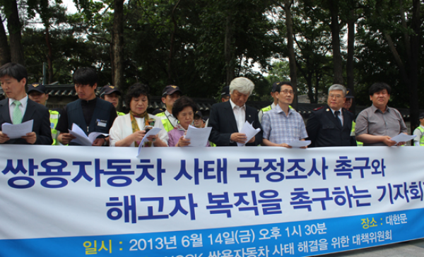 한국기독교교회협의회 ‘쌍용자동차 사태해결을 위한 대책위원회’(이하 대책위)는 14일 쌍용자동차 국정조사와 해고자 복직을 촉구하는 기자회견에서 “앞으로 쌍용자동차 문제가 해결될 때까지 강도 만난 이들과 함께 할 것”이라고 선언하고, 정부와 국회에 국정조사 약속을 지키라고 촉구했다.