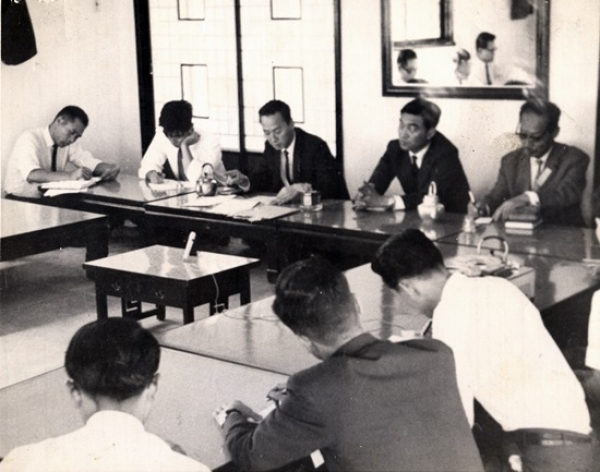 ![]() ▲1965년 용당산 호텔에서 모인 한국 6대 종교지도자 모임 광경(사진제공 대화문화 아카데미)