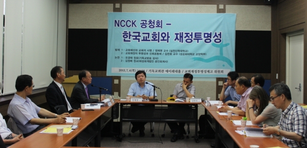 NCCK 교회재정투명성 제고위원회(위원장 황광민 목사)는 2013년 7월 4일 오후 2시에 기독교회관 에이레네 홀에서 <한국교회와 재정투명성>이란 주제 하에 공청회를 개최하여, 한국교회가 재정(돈)으로 인해 복음을 오염시킬 수 있는 위험성에 대한 논의를 진행했다.