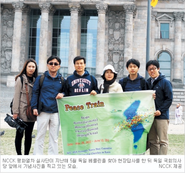 ![]() 분단과 통일의 상징인 독일 베를린을 출발해 모스크바와 베이징을 거쳐 부산에 이르는 평화열차 참가단이 6일 오전 서울을 출발, 23일 간의 대장정에 오른다. 19세 신학생부터 77세 은퇴 목회자까지 이번 평화열차 참가자 130여명의 염원은 한반도 평화통일이었다.