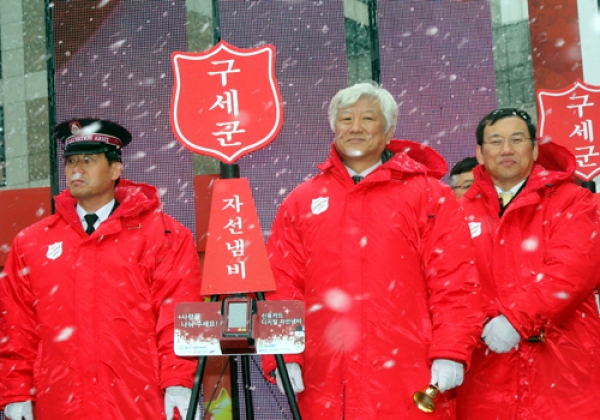 올해 구세군 자선냄비 시종식은 MBC 이재용·이정민 아나운서의 사회로 진행됐다. 참석자들은 짙은 눈발이 흩날리는 상황 속에서도, 끝까지 자리를 지키며 시종식의 기쁨을 나눴다. 한국구세군 박종덕 사령관은 “1928년부터 85년째 이어지는 자선냄비 모금활동을 통해 소외된 사회적 약자들이 희망으로 2014년을 준비할 수 있도록, 자선냄비의 사랑의 종소리를 힘껏 울릴 것”이라면서 “국민들이 적극적으로 자선냄비를 통한 모금 활동에 참여해 줄 것”을 부탁했다. 나눔국민운동본부 손봉호 대표는 축사에서 “우리 사회는 엄청난 발전에도 불구하고 갈등으로 얼룩져 있고, 행복지수도 낮다. 그래도 일그러진 세상에 구세군의 자선냄비가 있다는 것이 얼마나 다행인가. 잠시라도 고통당하는 이웃을 생각할 수 있고, 어려운 이웃들은 종소리를 통해 위로를 받을 수 있다. 작년에 이어 금년에도 구세군의 종소리와 함께 우리 사회에 따뜻한 바람이 일기를 바란다”고 전했다. ![]() 한국기독교교회협의회(NCCK) 김영주 총무는 축사에서 “구세군의 종소리는 지난 우리의 삶을 반성하라는 자각의 종소리다. 그동안 우리는 나만의 삶을 살아가지는 않았는지, 이기적인 삶은 아니었는지를 자각해야 한다. 또 이는 이웃을 돌보라는 부름의 종이다. 가난하고 힘 없는 자를 어떻게 돌보고 있는가. 또 우리 사회를 희망과 사랑으로 가득 찬 행복한 세상으로 만들라는 의무의 종이다. 우리는 이 의무에 충성스럽게 봉사하여 우리 사회를 아름답고 행복한 사회로 만드는 데 최선을 다해야 할 것”이라고 전했다.