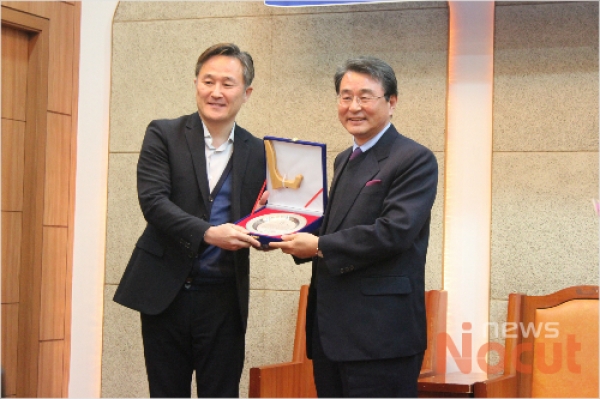 ![]() ▲ 표창원 교수가 교회협 인권센터 허원배 이사장으로부터 인권상을 받고 있다.
