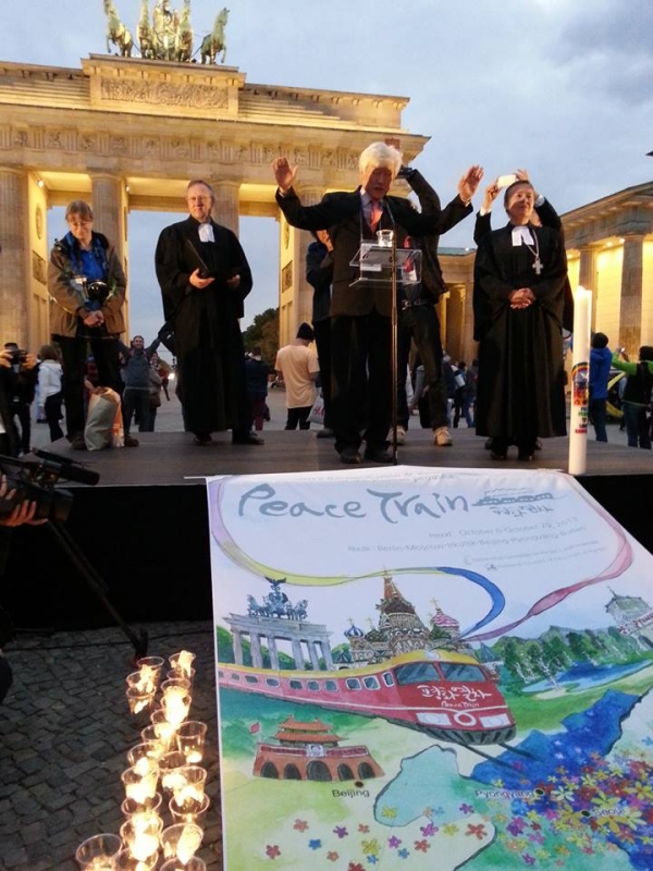 ![]() The Peace Train journey was a vision which developed in Korea with the plans for WCC in Korea. What a chance to show the deep desire for peace and reunification by bringing peace-loving people on this metaphor-journey from Berlin to Busan, across the DMZ. The journey started in Berlin. Germany shared the experience of an Allied- imposed division after World War II, and lived through the Cold War in this divided state. Germany experienced reunification, and so the train carried this hope and possibility to Korea. The program in Berlin was most significant to those who took part; as they learned of the pain and trauma of division on the people of the country, and their struggles for reunification.