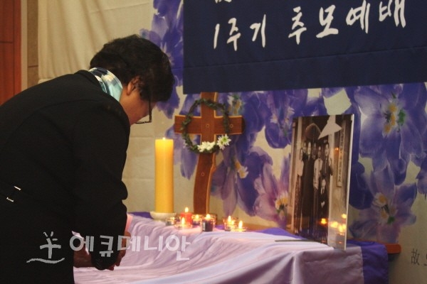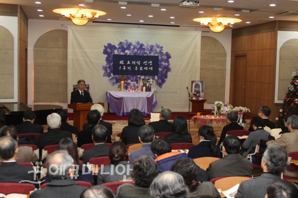 ![]() ▲ 3일 고 오재식 선생의 추모 1주기를 맞아 예배가 드려졌다. 현장에는 교계를 비롯한 정계, 시민사회운동 인사들이 대거 참석했다. ⓒ에큐메니안 고수봉