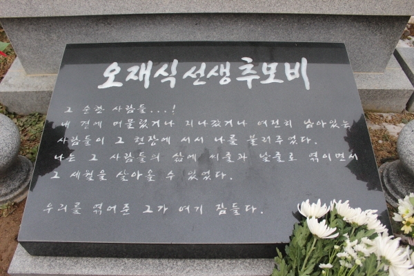 ![]() ▲ 고 오재식 선생의 묘소에 설치된 묘비. (사진제공: NCCK) |