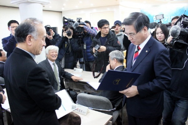 이어 유승훈 목사(건립위원회 부위원장)의 진행으로 건립위원회 조직 및 인선발표가 이루어졌고, 고문 대표 2인(박경조 주교, 손봉호 장로), 위원 대표 2인(이태근 목사, 이상로 장로), 분과위원장 대표 1인(교회협력분과 김성재 목사)에 대한 위촉장 증정이 진행되었습니다.
