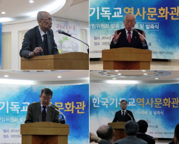 이 날 발족식에는 교계 원로들이 참석하여 격려의 말을 전하기도 했습니다. 방지일 목사(영등포교회 원로목사)는 “후예들에게 줄 유일의 유산을 마련하게 되었다는 자부심을 가지고 쉽진 않지만 모두 힘을 합쳐 역사문화관 건립을 이루어 갈 것”을 권면하였고, 김선도 감독(광림교회 원로목사)은 “기독교는 과거를 회상하는 공동체이며, 한국기독교는 자랑스러운 역사적 사건과 문화적 유산을 갖고 있다.