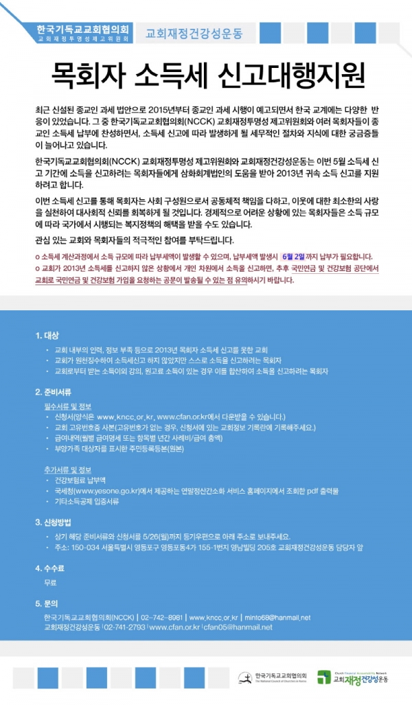 [공지]목회자 소득세 신고 대행 지원-신청서 양식다운