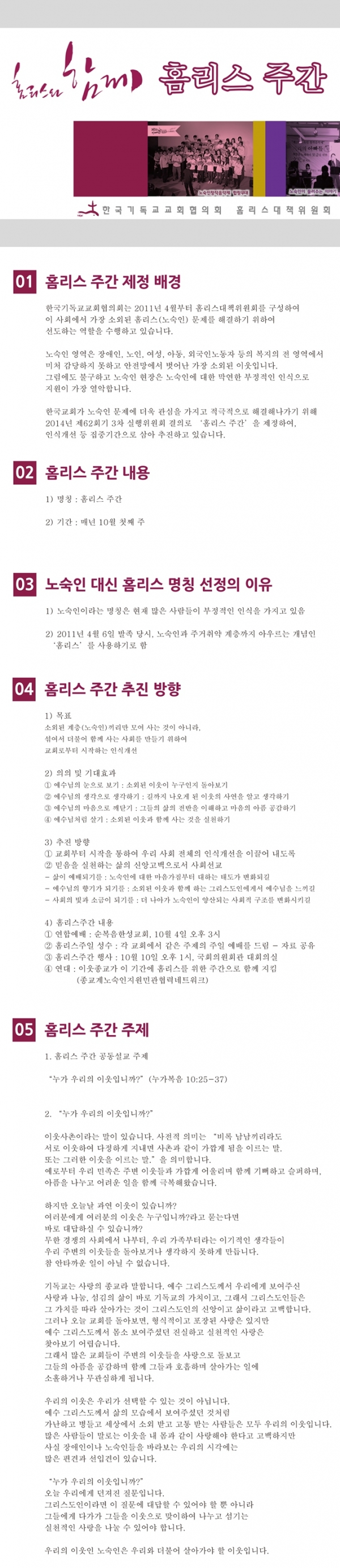 별첨1) 홈리스주간 설명(기도문, 예식서 포함) 및 홈리스대책위원회 소개.hwp 별첨2) 홈리스주간 공동설교문 기초자료(종민협).hwp 별첨3) 인식개선 만화 - 영상제작 중.zip