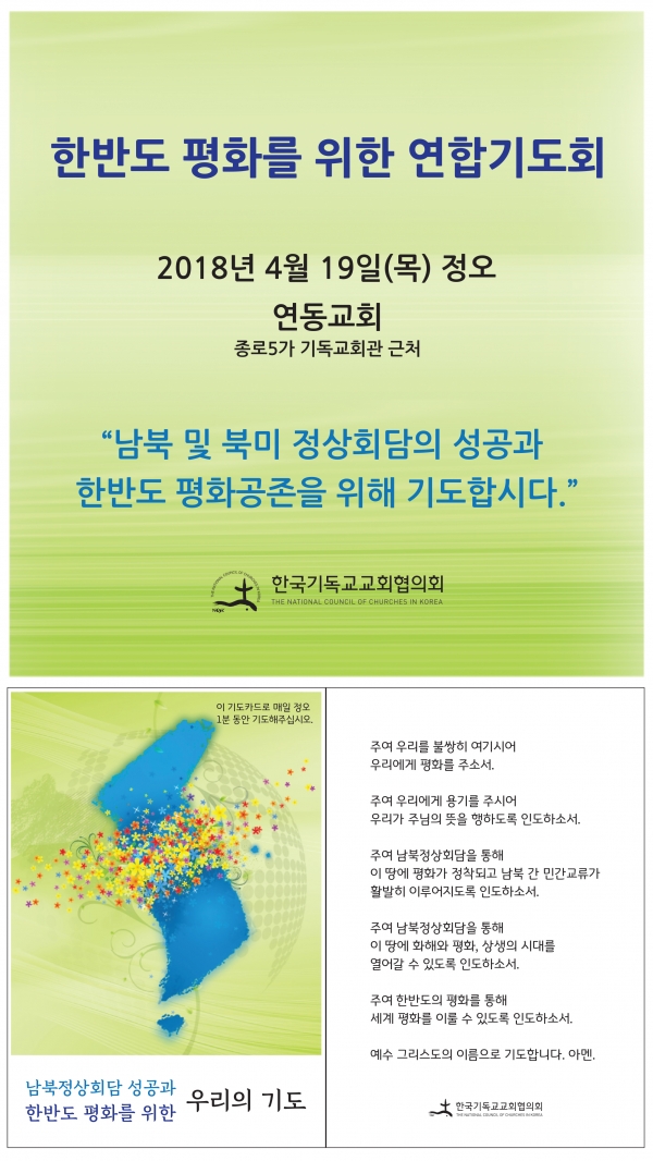 (공지) 한반도 평화를 위한 연합기도회 4/19