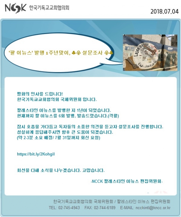 NCCK) 팔레스타인 이뉴스, 설문조사에 참여해주세요!