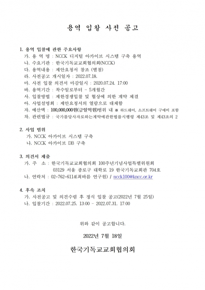 나. 수요기관 : 한국기독교교회협의회(NCCK)
