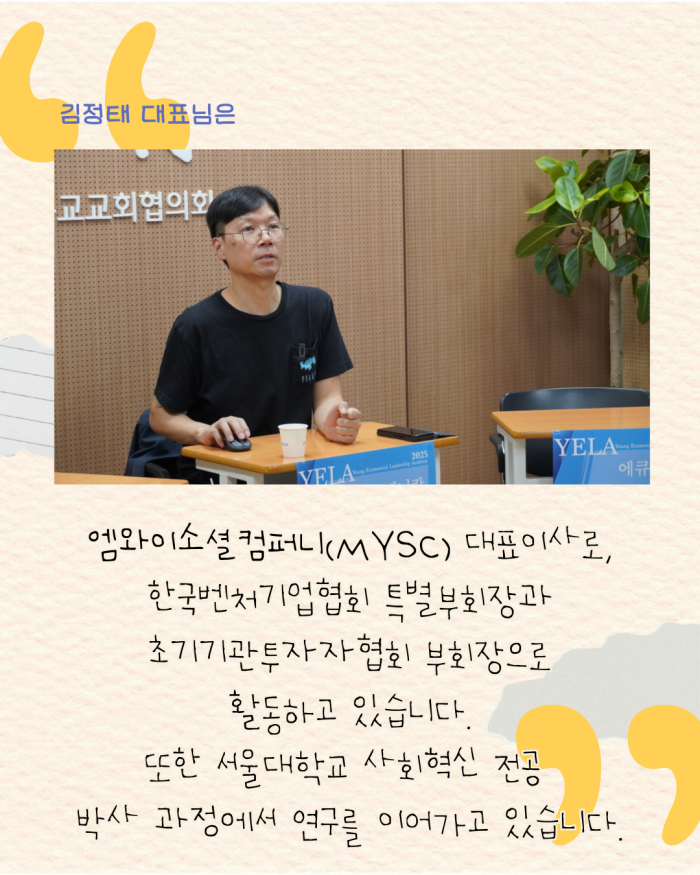 엠와이소셜컴퍼니(MYSC) 대표이사로,